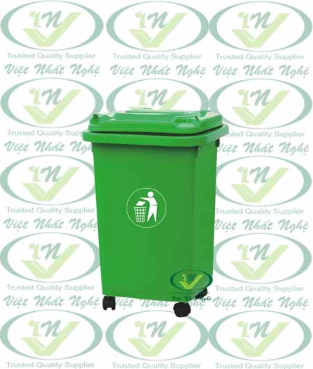 Thùng rác nhựa 60 lít thường dùng trong thu gom và vận chuyển rác ở hộ gia đình, quán ăn, quán cafe, trường học.