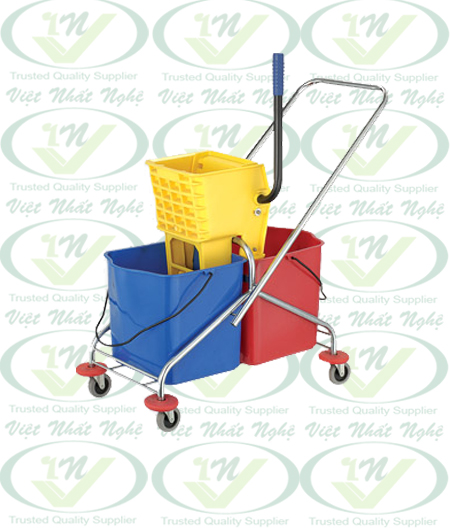 Xe vắt nước đôi gồm 2 xô: xô đựng nước bẩn và xe đựng nước sạch, bánh xe bằng cao su bền, không tạo ra tiếng ồn khi di chuyển. Thích hợp làm vệ sinh trong khách sạn, văn phòng,..