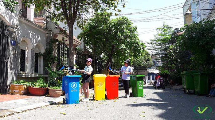Hoạt động thu gom rác tại khu phố Công ty Việt Nhất Nghệ: