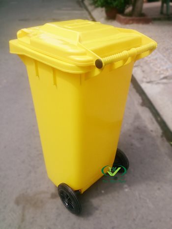 - Thùng rác 120 lít màu vàng dành cho Nhà Hàng dùng để lưu trữ rác ở bãi tập kết cần đặc biệt quan tâm đến nắp thùng phải kín không để lại mùi hôi.