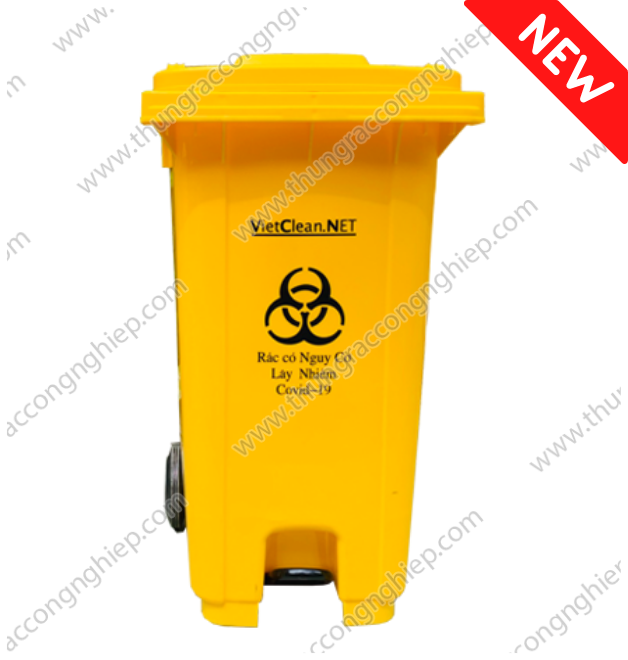 Thùng rác nhựa y tế có nguy cơ lây nhiễm Covid-19 dung tích 240 lít hiện được sản xuất bằng nhựa HDPE giúp thùng bền bỉ hơn so với các loại chất liệu thông thường. Thùng rác y tế màu vàng 240 lít được sản xuất với: Chân đạp bằng thép bền bỉ, chắc chắn. Người dùng dễ dàng mở nắp thùng rác mà không cần phải tiếp xúc tay trực tiếp. Dung tích lớn 240 lít giúp chứa được rất nhiều rác thải y tế trong một thùng. Hai bánh xe cao su chắc chắn giúp việc di chuyển khi có rác trong thùng nhẹ nhàng hơn. => Xem thêm nhiều sản phẩm khác của Thungraccongnghiep tại đây